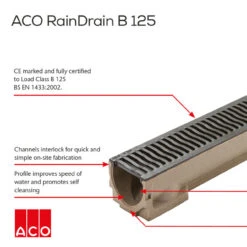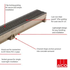 Be the first to review “ACO RainDrain B125 Channel With Cast Iron Heelguard ATec Grating” Cancel reply
