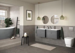 Avari bathrooms is a stunning collection of bathroom units and sanitaryware that will cater to all tastes. Whether you’re looking for modern curved edges with clever integrated lighting solutions, or more traditional styles in-keeping with older character homes. Then we can help you create the perfect bathroom for you. One thing that shouldn’t be overlooked is the shape of your suite sets, as this set’s the style for the rest of your bathroom, so it’s important to consider what look & feel you want overall when choosing. If you want more help designing your perfect bathroom, or would like more information about the Avari Castara Wall Unit & Basin Grey Ash, then contact one of our local branches or showrooms where one of our experts can help you turn your ideas into reality.
