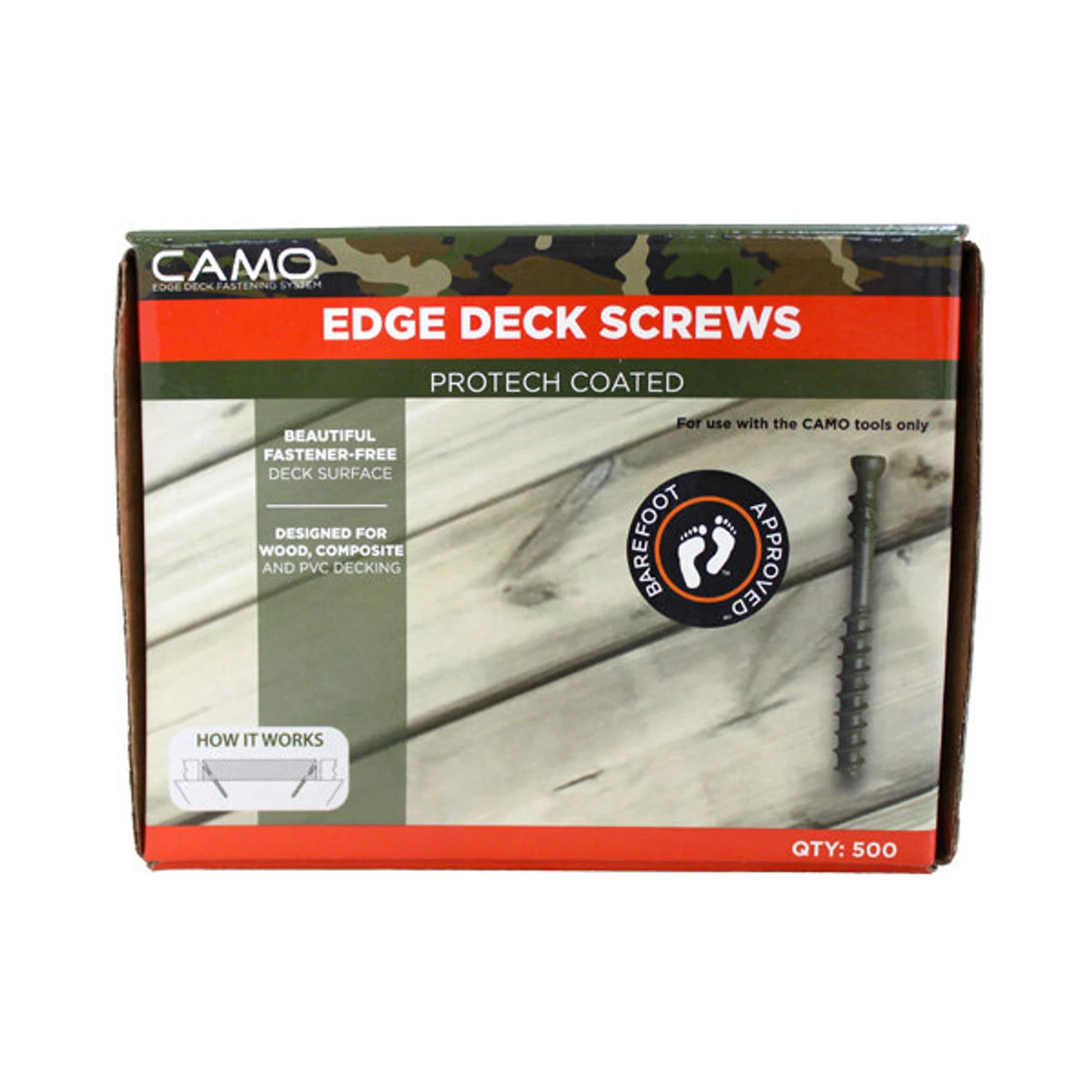 Steel is used to make the 48mm CAMO Pack of 500 Deck Screws, which is then coated with a Protech finish. They may be used with any 19-28mm board depth decking material, including composite, PVC, and hardwoods like balau and oak, without the need to pre-drill. Only authentic CAMO deck screws are recommended for use with the CAMO Marksman Pro since they were designed to function together. Using goods from different companies might not give you the best results.