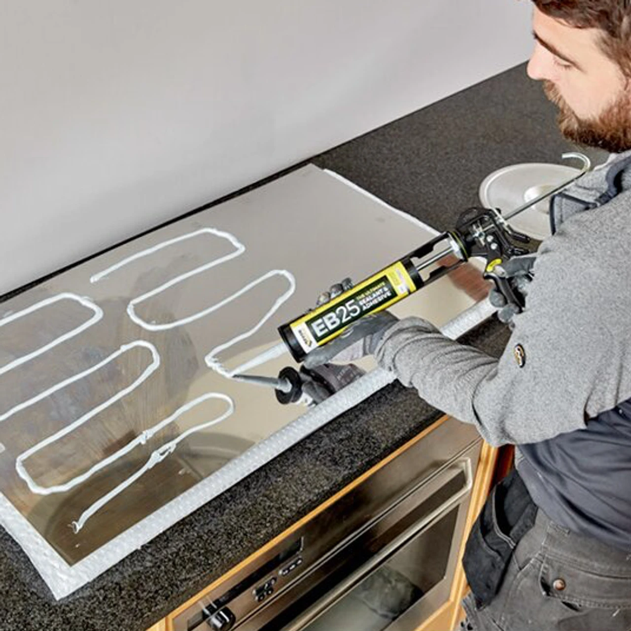 Suitable for use both indoors and outdoors, EB25 can be used on virtually any material in most weather conditions and can even be used underwater. EB25 also has the added benefit of being certified for use in sanitary and food preparation areas and once cured is resistant to mould, temperature extremes, chemicals and more.