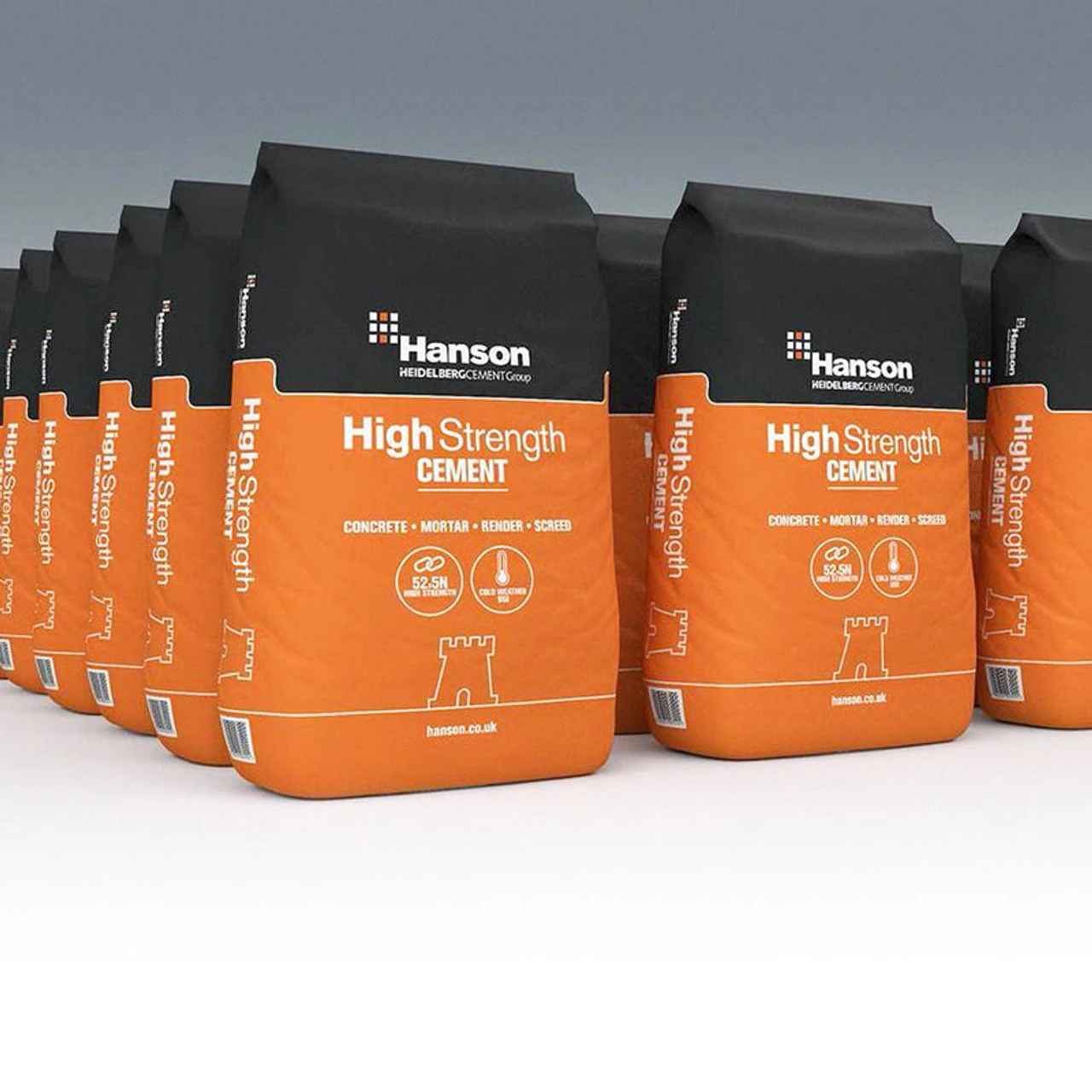 Hanson High Strength Cement 52.5 is ideal for use in concrete, mortar, render and screed where higher early strength is required. For example, manufacture of precast components, ground work, cold weather working and faster turn-round of projects.