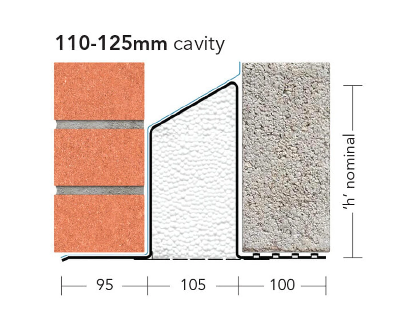 Heavy Duty Load 100mm Inner Lead Cavity Wall Steel Lintels are used to enable blockwork to be built tight against the inner face of the lintel. This enables mortar to bed on top of the blockwork before floor units are laid to provide even distribution of load. They may be propped to facilitate speed of construction. Manufactured in Class A1 grade 304 austenitic stainless steel, the NCCTL represents the ideal specification for all applications requiring Document B compliance. The NCCTL can also be ordered in grade 316 austenitic stainless steel if required in coastal locations. This product, L1/XHD 110 is for Cavity widths 110-125mm and heavy duty loads.