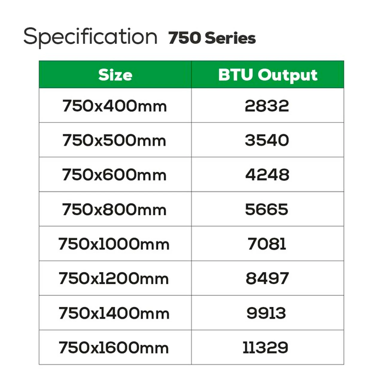 | Size | 750 x 400mm, 750 x 500mm, 750 x 600mm, 750 x 700mm, 750 x 800mm, 750 x 900mm, 750 x 1000mm, 750 x 1100mm, 750 x 1200mm, 750 x 1400mm, 750 x 1600mm |