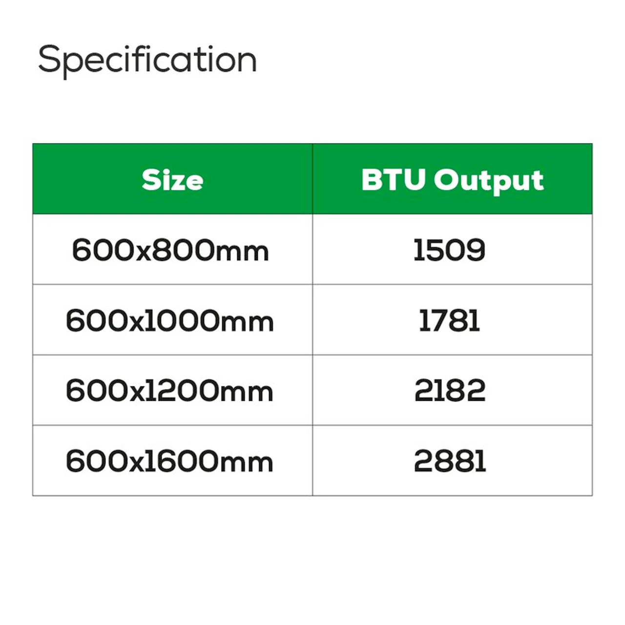 | Size | 600 x 800mm, 600 x 1000mm, 600 x 1200mm, 600 x 1600mm, 600 x 1800mm |
