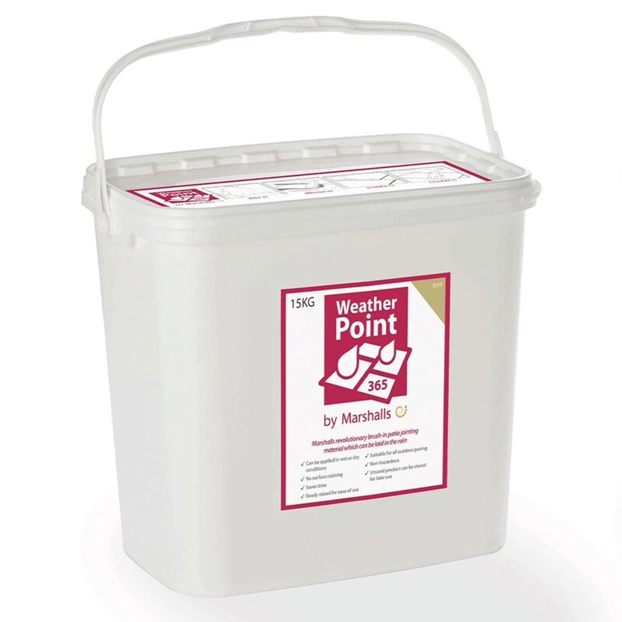 Marshalls Weatherpoint 365 is an all-weather jointing compound that will help to decrease labour participation and speed up installation time. Weatherpoint sets like concrete with no mixing or waste. It may be stored under water and will continue to function eternally. Weatherpoint has the same strength as 4:1 mortar when fully cured.