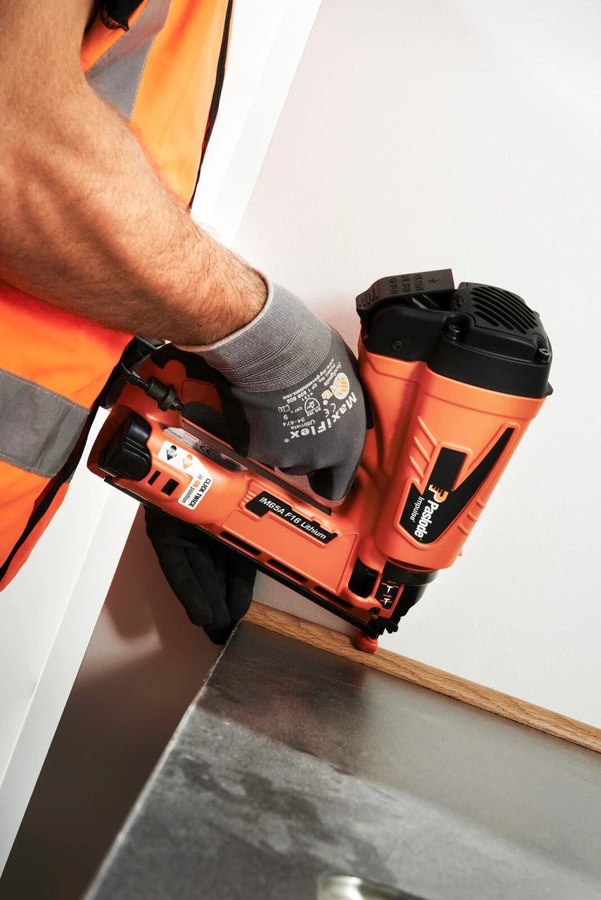 Compact, quick and durable finish nailer with a no-mar tip to enable precise fixing. This finishing nailer includes a clever last nail lock out system, that prevents damage to the tool or building materials from firing when empty. This versatile nail gun is perfect for completing most 2nd fix applications, including: Architraves, Skirting boards, Tongue and groove panelling, Door stops, Window casing, Dado rail, Beading, and Stair rails. With 30 Joules of power it can deliver up to 10,000 shots per charge, which equates to 5 brad fuel packs. It also is the ideal power to ensure flush finish in all softwoods and dense MDF. With its light and balanced design, it makes it perfect for a carpenter, joiner or avid DIY-er working on both new build and renovation projects to manoeuvre in the tightest of spaces.