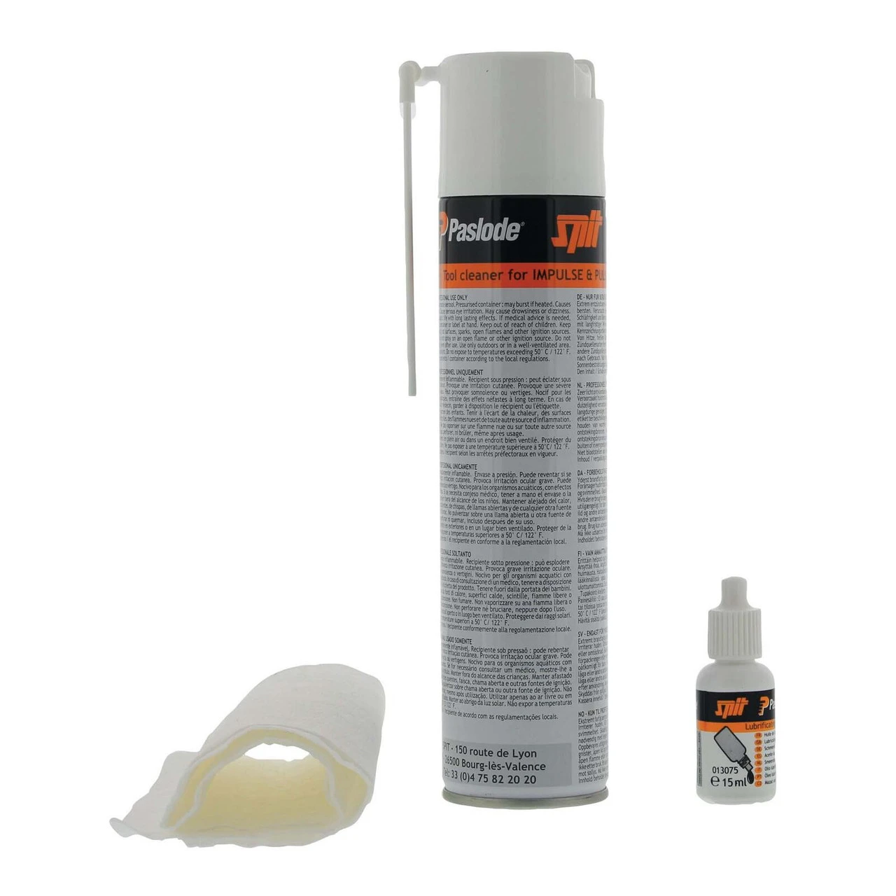 This Paslode cleaning kit (013690) is suitable for use on all Impulse nailers and Spit Pulsa tools. Paslode nail guns should be cleaned and lubricated regularly to maintain their performance and extend the life of the tool.
