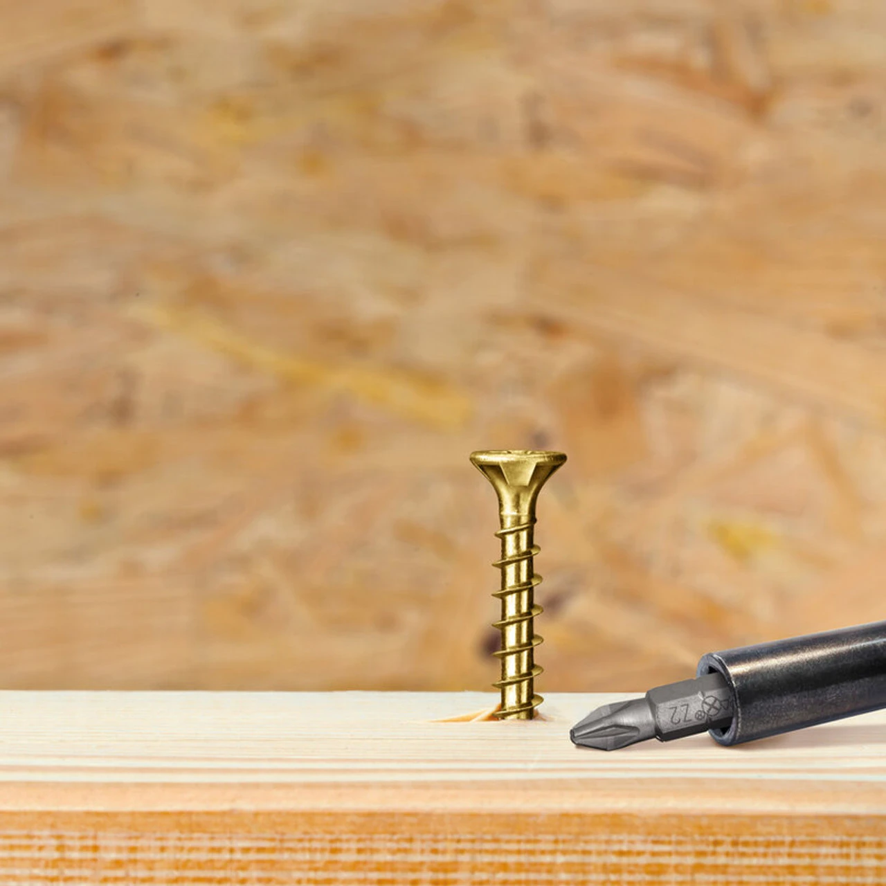 Fully threaded single thread woodscrew with ground serrations for quick and precise driving. Countersinks with many heads and a solid grip and there is no requirement for splitting or drilling a pilot hole.