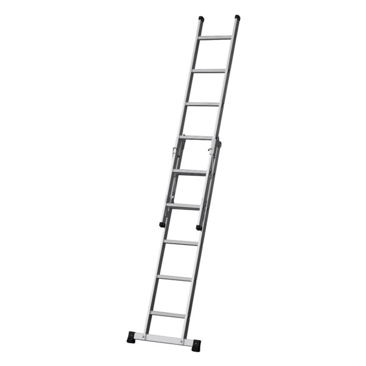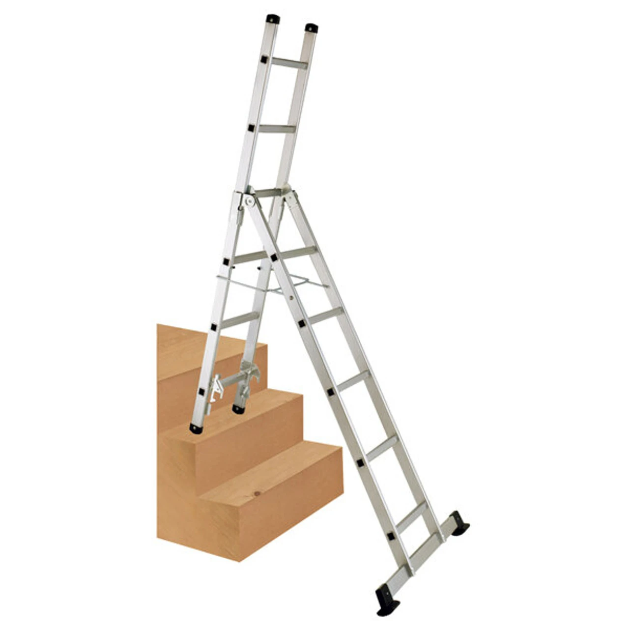 The 5101318 3 way combination ladder is a 3 in 1 ladder that be transformed into a stepladder, extension ladder and stairwell ladder modes to cater for different work requirements. Constructed using sturdy box section stiles, this ladder is a reliable and safe choice when working at heightProduct features include a locking restraint for added ladder stability when in use, slip-resistant square rungs for comfort and security and a wide stabiliser bar for added safety. Conforms to the new EN131 standard. For Professional Use.
