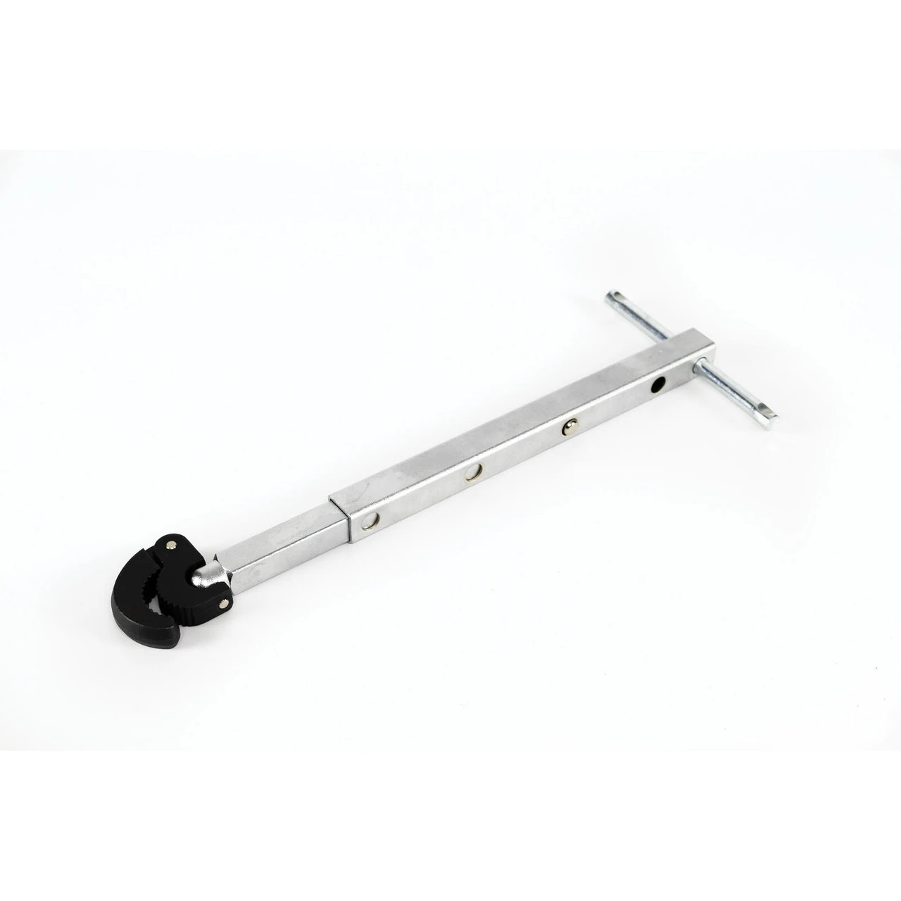 A plumbing wrench is a key tool for any plumbers tool box, and this Wyndam Telescopic Basin Wrench will help install or remove a facet with ease. It features a clever self-locating spring loaded hook paired to a slender telescopic adjustable handle that allows optimum leverage on seized nuts.